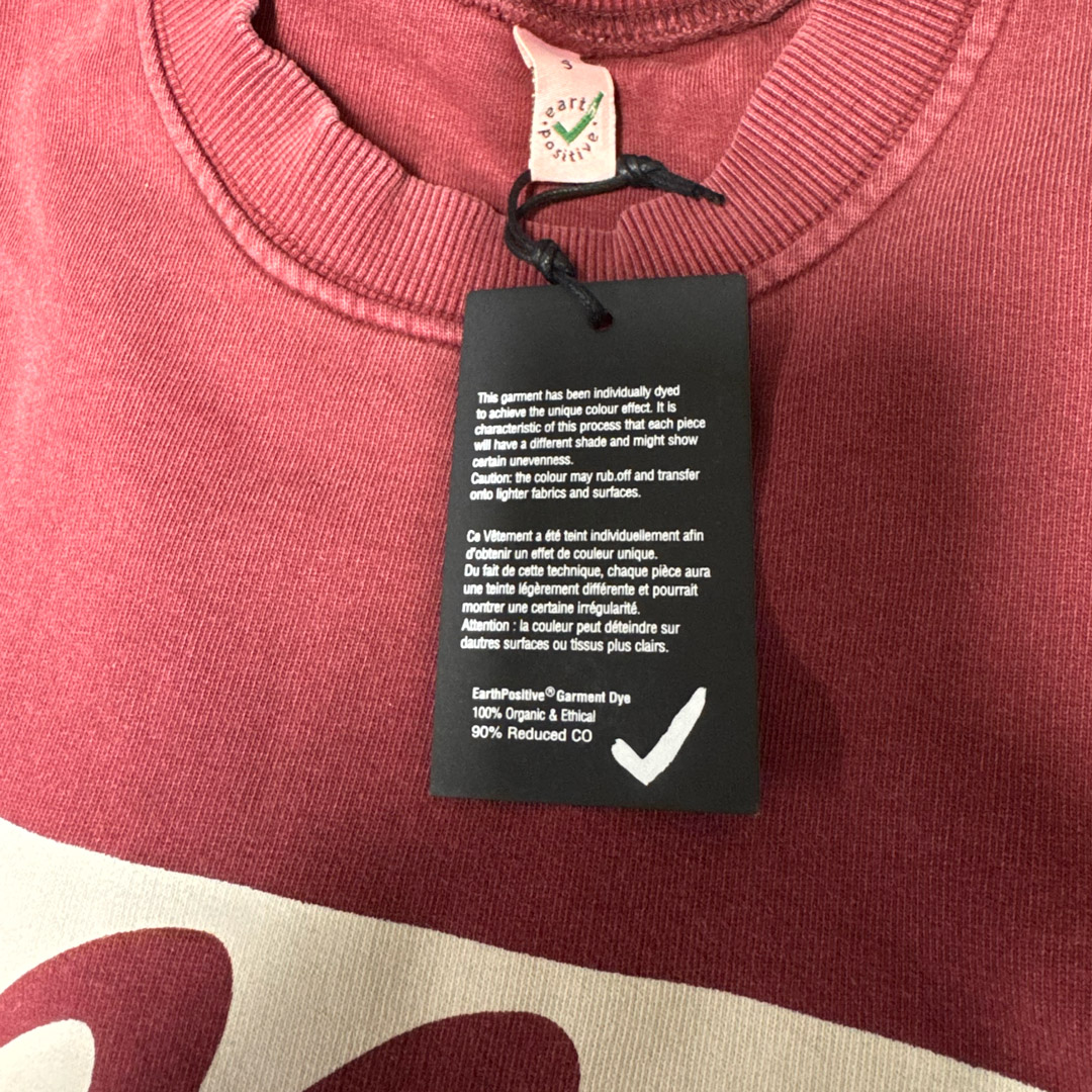 Washed burgundy sweatshirt. White Logo. Organic cotton.